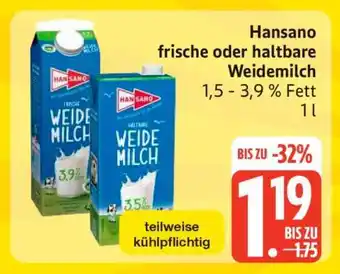 Jetzt im Angebot bei Edeka: Hansano Weidemilch ✅ Aktion gültig vom 16-02 bis 21-02.