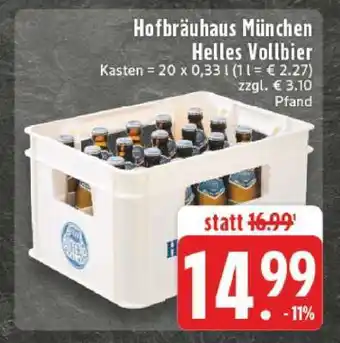 Jetzt im Angebot bei Edeka: Hofbräuhaus München Helles Vollbier ✅ Aktion gültig vom 5-01 bis 10-01.