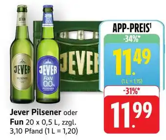 Jetzt im Angebot bei Edeka: Jever Pilsener oder Fun 20 x 0,5 L ✅ Aktion gültig vom 19-01 bis 24-01.