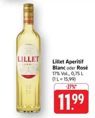 Jetzt im Angebot bei Edeka: Lillet Aperitif Blanc oder Rosé ✅ Aktion gültig vom 19-01 bis 24-01.