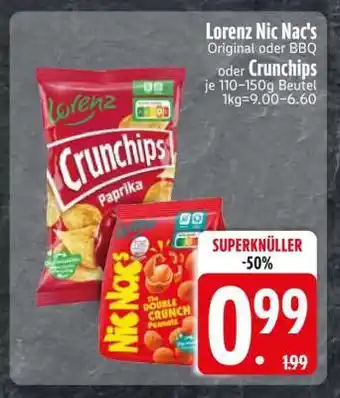 Jetzt im Angebot bei Edeka: Lorenz Nic Nac‘s Original oder BBQ oder Crunchips ✅ Aktion gültig vom 13-04 bis 18-04.