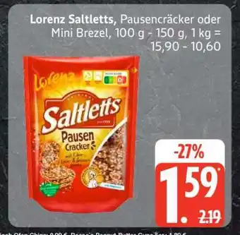 Lorenz Saltletts Pausencräcker oder Mini Brezel-Rabatt bei Edeka