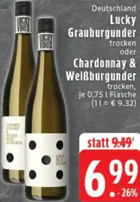 Jetzt im Angebot bei Edeka: Lucky Grauburgunder oder Chardonnay & Weißburgunder ✅ Aktion gültig vom 29-12 bis 3-01.
