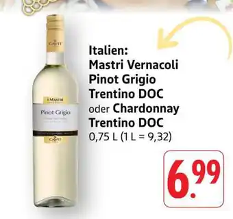 Mastri Vernacoli Pinot Grigio Trentino DOC oder Chardonnay Trentino DOC Aktion bei Edeka