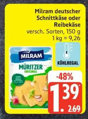 Jetzt im Angebot bei Edeka: Milram deutscher Schnittkäse oder Reibekäse ✅ Aktion gültig vom 9-02 bis 14-02.