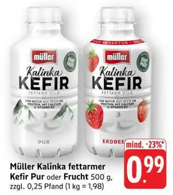 Müller Kalinka fettarmer Kefir Pur oder Frucht Aktion bei Edeka