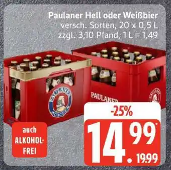 Jetzt im Angebot bei Edeka: Paulaner Hell oder Weißbier ✅ Aktion gültig vom 20-10 bis 25-10.