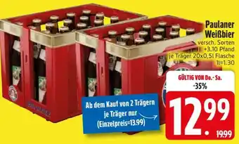 Jetzt im Angebot bei Edeka: Paulaner Weißbier ✅ Aktion gültig vom 23-02 bis 28-02.