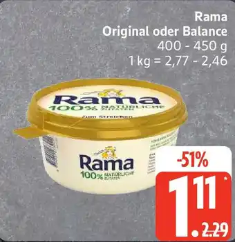 Jetzt im Angebot bei Edeka: Rama Original oder Balance ✅ Aktion gültig vom 12-04 bis 18-04.