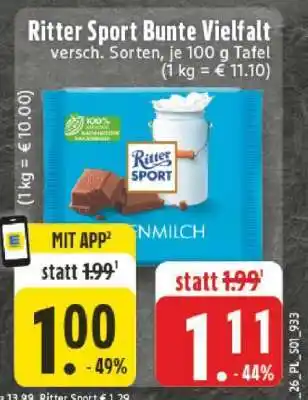 Jetzt im Angebot bei Edeka: Ritter Sport Bunte Vielfalt ✅ Aktion gültig vom 9-03 bis 14-03.