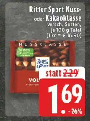 Ritter Sport Nuss- oder Kakaoklasse-Angebot bei Edeka