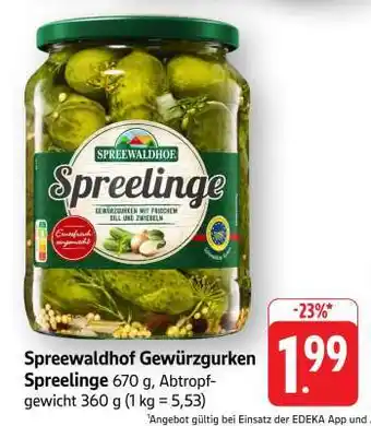 Jetzt im Angebot bei Edeka: Spreewaldhof Gewürzgurken Spreelinge ✅ Aktion gültig vom 5-01 bis 10-01.