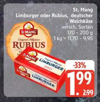 Jetzt im Angebot bei Edeka: St. Mang Limburger oder Rubius deutscher Weichkäse ✅ Aktion gültig vom 16-02 bis 21-02.