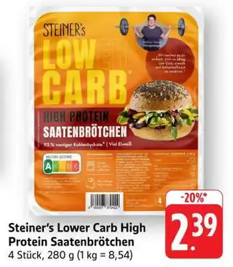 Steiner’s Lower Carb High Protein Saatenbrötchen Aktion bei Edeka