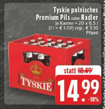 Jetzt im Angebot bei Edeka: Tyskie polnisches Premium Pils oder Radler ✅ Aktion gültig vom 2-03 bis 7-03.