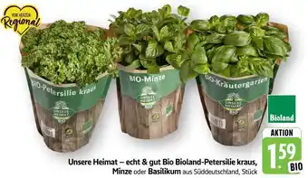 Jetzt im Angebot bei Edeka: Unsere Heimat – echt & gut Bio Bioland-Petersilie kraus, Minze oder Basilikum ✅ Aktion gültig vom 20-04 bis 25-04.