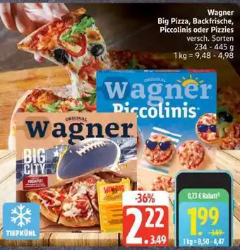 Jetzt im Angebot bei Edeka: Wagner Big Pizza Backfrische, Piccolinis oder Pizzies ✅ Aktion gültig vom 12-01 bis 17-01.