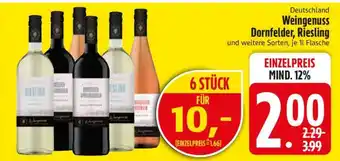 Jetzt im Angebot bei Edeka: Weingenuss Dornfelder, Riesling ✅ Aktion gültig vom 13-04 bis 18-04.