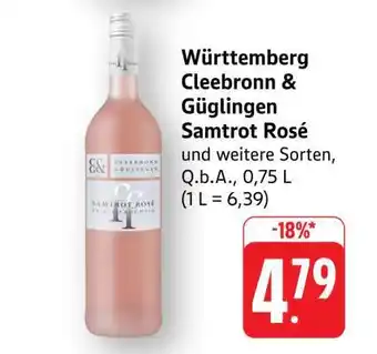 Württemberg Cleebronn & Güglingen Samtrot Rosé-Angebot bei Edeka