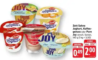 Zott Sahne Joghurt, Kaffeegenuss oder Pure Joy Angebote und Aktionen bei Edeka