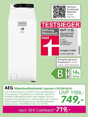 AEG Waschvollautomat Toplader LTR7EP1ECO-Rabatt bei EP