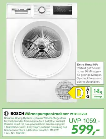 Jetzt im Angebot bei EP: BOSCH Wärmepumpentrockner WTH85V94 ✅ Aktion gültig vom 27-02 bis 14-03.