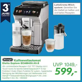 Jetzt im Angebot bei EP: DeLonghi Kaffeevollautomat Eletta Explore ECAM450.55.S ✅ Aktion gültig vom 30-12 bis 17-01.