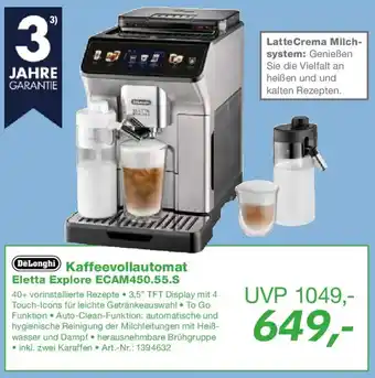 Jetzt im Angebot bei EP: DeLonghi Kaffeevollautomat Eletta Explore ECAM450.55.S ✅ Aktion gültig vom 27-02 bis 15-03.