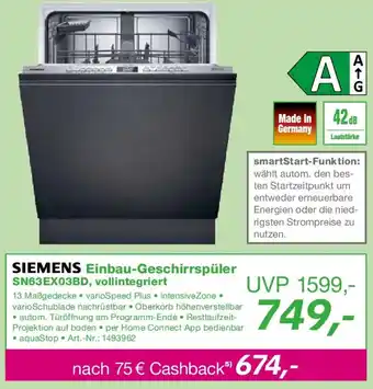 SIEMENS Einbau-Geschirrspüler SN63EX03BD, vollintegriert Angebote und Online Aktionen direkt aus dem aktuellen EP Angebot