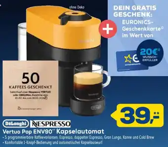 Jetzt im Angebot bei Euronics XXL: DeLonghi NESPRESSO Vertuo Pop ENV90 Kapselautomat ✅ Aktion gültig vom 14-02 bis 27-02.