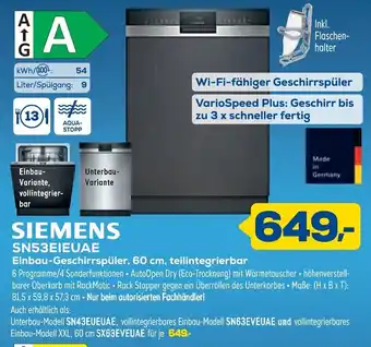 Jetzt im Angebot bei Euronics: SIEMENS SN53EIEUAE Einbau-Geschirrspüler, 60 cm, teilintegrierbar ✅ Aktion gültig vom 28-01 bis 8-02.