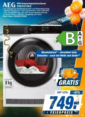 Jetzt im Angebot bei expert Techno Land: AEG Wärmepumpentrockner TR8T870EX ✅ Aktion gültig vom 24-04 bis 30-04.