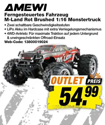 AMEWI Ferngesteuertes Fahrzeug M-Land Rot Brushed 1:16 Monstertruck Aktion bei expert Techno Land