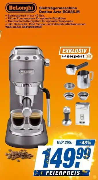 Jetzt im Angebot bei expert Techno Land: DeLonghi Siebträgermaschine Dedica Arte EC885.M ✅ Aktion gültig vom 24-04 bis 30-04.