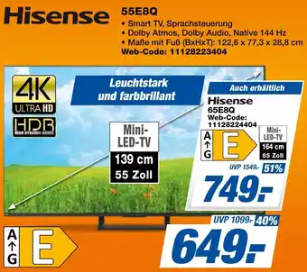 Hisense 55E8Q-Rabatt bei expert Techno Land