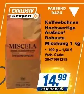 Jetzt im Angebot bei expert Techno Land: Kaffeebohnen Hochwertige Arabica/ Robusta Mischung ✅ Aktion gültig vom 24-04 bis 30-04.