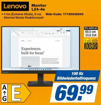 Lenovo Monitor L24-4e-Angebot bei expert Techno Land