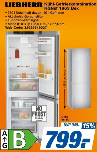 Jetzt im Angebot bei expert Techno Land: LIEBHERR Kühl-Gefrierkombination KGNsf 1863 Bex ✅ Aktion gültig vom 5-02 bis 12-02.