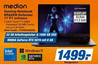 medion Gaming-Notebook ERAZER Defender 17 P1 schwarz-Angebot bei expert Techno Land