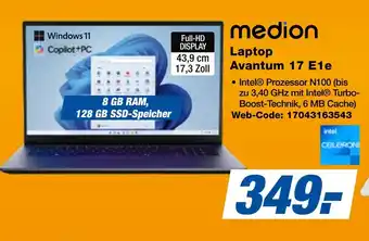 medion Laptop Avantum 17 E1e-Angebot bei expert Techno Land