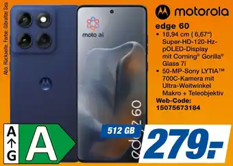 Den Preis von dem Motorola edge 60 finden Sie auch oben auf der Website, zusammen mit dem Datum, ab wann das Angebot erhältlich ist. Sie können die Preise auch im aktuellen Expert Techno Land Prospekt nachhalten oder auf der expert Techno Land Website nachschauen. Durch die Angebote können Sie sicher sein, die expert Techno Land Produkte zum absoluten Bestpreis zu ergattern.
