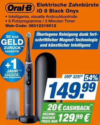 Jetzt im Angebot bei expert Techno Land: Oral-B Elektrische Zahnbürste iO 8 Black Onyx ✅ Aktion gültig vom 23-01 bis 29-01.