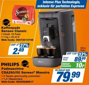 PHILIPS Padmaschine CSA260/50 Senseo Maestro Angebote und Online Aktionen direkt aus dem aktuellen expert Techno Land Angebot