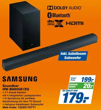 Jetzt im Angebot bei expert Techno Land: SAMSUNG Soundbar HW-B660GF/ZG ✅ Aktion gültig vom 20-02 bis 26-02.