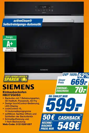 SIEMENS Einbaubackofen HB372G0S3 Aktion bei expert Techno Land