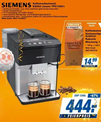 Jetzt im Angebot bei expert Techno Land: SIEMENS Kaffeevollautomat EQ500 classic TP515D01 ✅ Aktion gültig vom 24-04 bis 30-04.