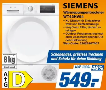 Jetzt im Angebot bei expert Techno Land: SIEMENS Wärmepumpentrockner WT43HV94 ✅ Aktion gültig vom 27-02 bis 5-03.