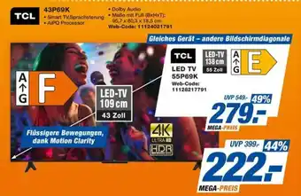 Diese Woche ist TCL 43P69K bei expert Techno Land reduziert erhältlich. Hier finden Sie alle Informationen zu Preisen, Aktionsdetails und Laufzeit. Prüfen Sie weitere TCL 43P69K Aktionen, um sicherzugehen, dass Sie den besten Preis erhalten. Die TCL 43P69K Aktion gilt in Kalenderwoche 05. Nach Ablauf zeigen wir Ihnen vergleichbare Alternativen. Abonnieren Sie die Kategorie, um beim nächsten Mal direkt informiert zu sein, wenn TCL 43P69K wieder reduziert ist.Häufig gestellte Fragen über TCL 43P69K