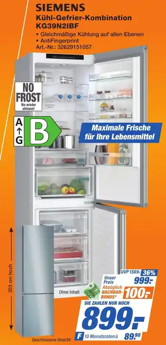 SIEMENS Kühl-Gefrier-Kombination KG39N21BF-Rabatt bei Expert Technomarkt