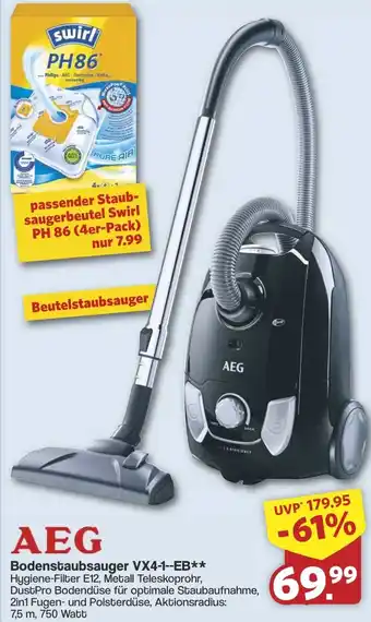 Jetzt im Angebot bei Famila Nord West: AEG Bodenstaubsauger VX4-1--EB ✅ Aktion gültig vom 12-01 bis 17-01.